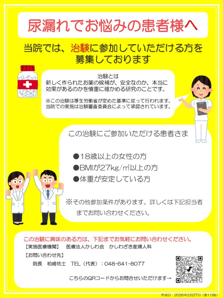 尿漏れでお困りの方へ 治験募集のお知らせ